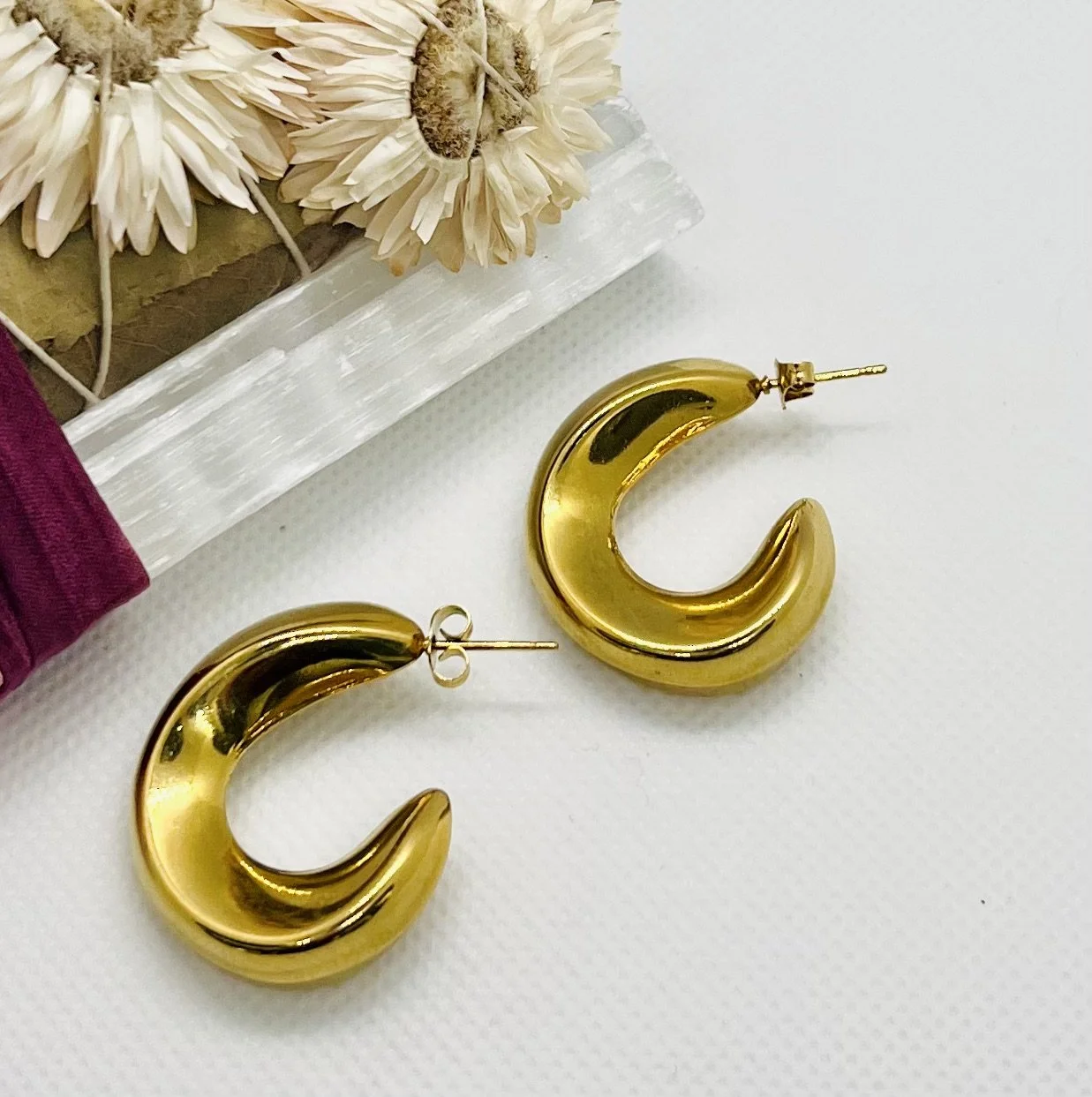 Shop the collection All metal earrings are stainless steel Everyday Mini Hoops $20.00 Silver 18K Gold Plated Add To Cart Added! Sleek Lined Hoops $22.00 Add To Cart Added! Curvy Chic $25.00 Add To Cart Added!